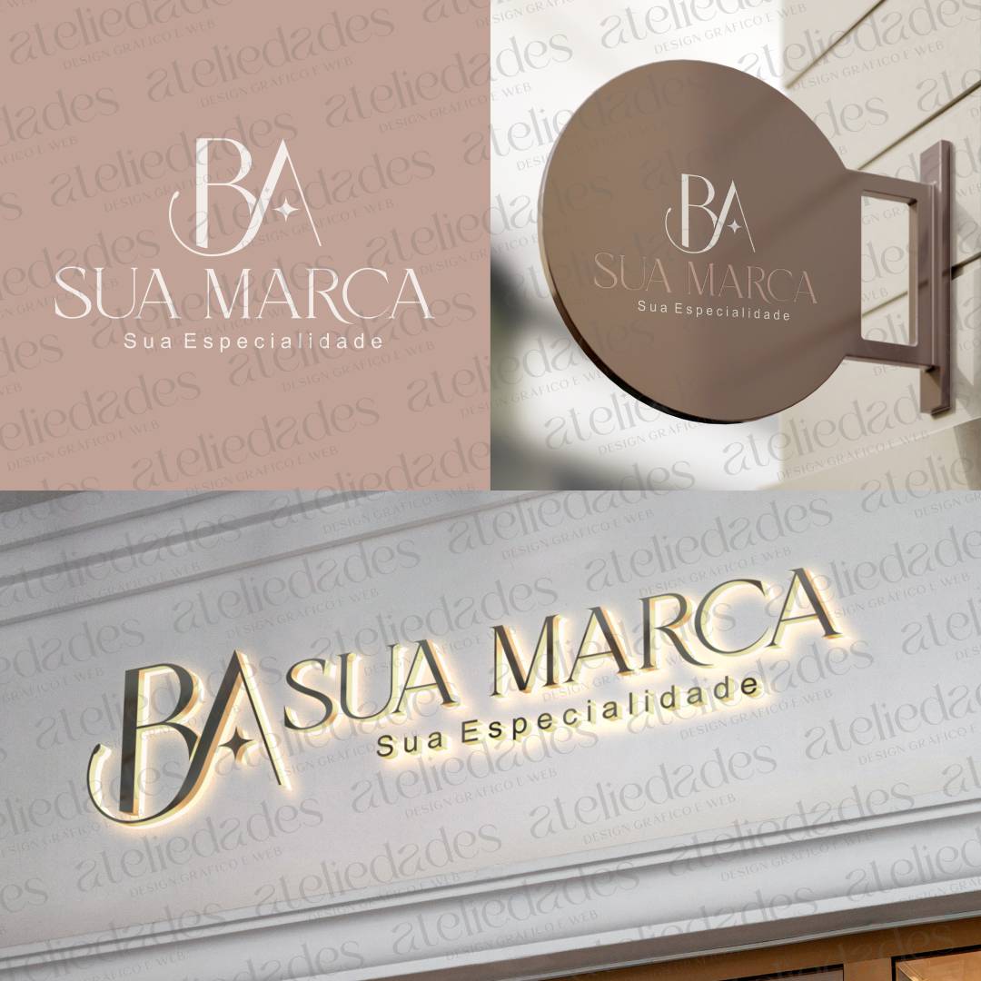- Versátil: Serve para diversos segmentos, como Estética, Fisioterapia, Loja Feminina, marcas pessoais, profissionais autônomos ou empresas que desejam um logotipo com iniciais BA elegante e atemporal.