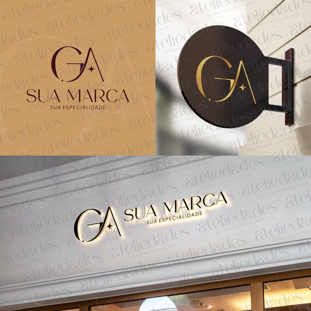 - Versátil: Serve para diversos segmentos, como Estética, Fisioterapia, Loja Feminina, marcas pessoais, profissionais autônomos ou empresas que desejam um logotipo com iniciais GA elegante e atemporal.